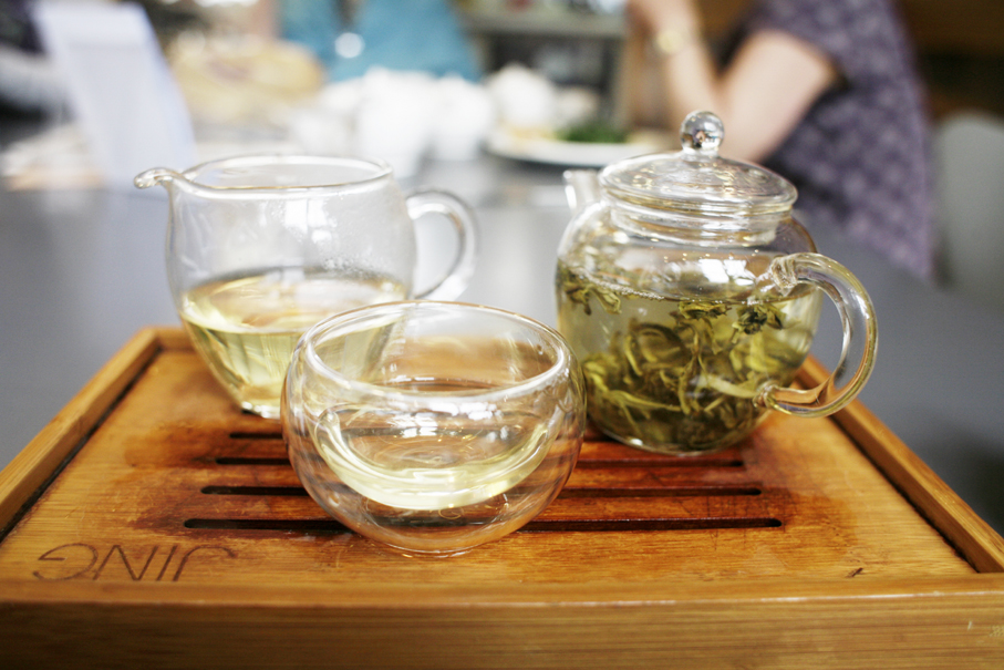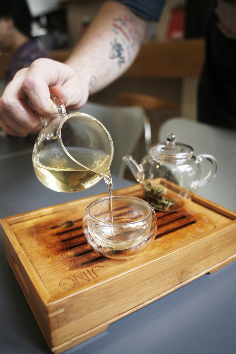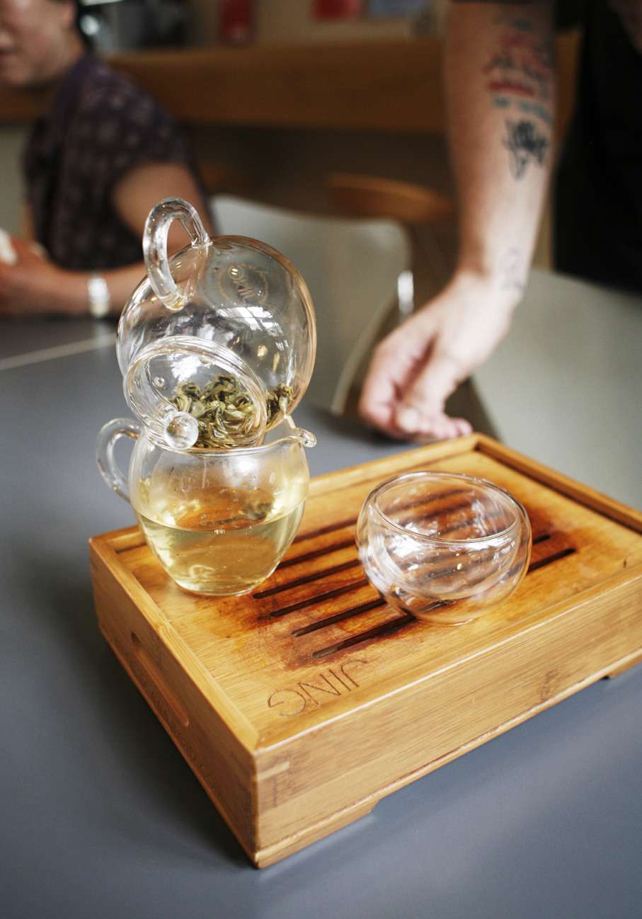 Når du bestiller for eksempel en Jasmine Pearls så servers teen i et elegant Gong Fu te-sett hvor du får en liten glasskanne med teblader som er trukket i varmt vann og en liten tom glasskanne, samt et lite teglass. Når tebladene er ferdig trukket, viser servitøren deg hvordan du heller teen over i den tomme glasskannen og deretter over i glasset. Du får en ekstra kanne med varmt vann slik at du kan gjenta prosedyren og lage deg mer te selv.