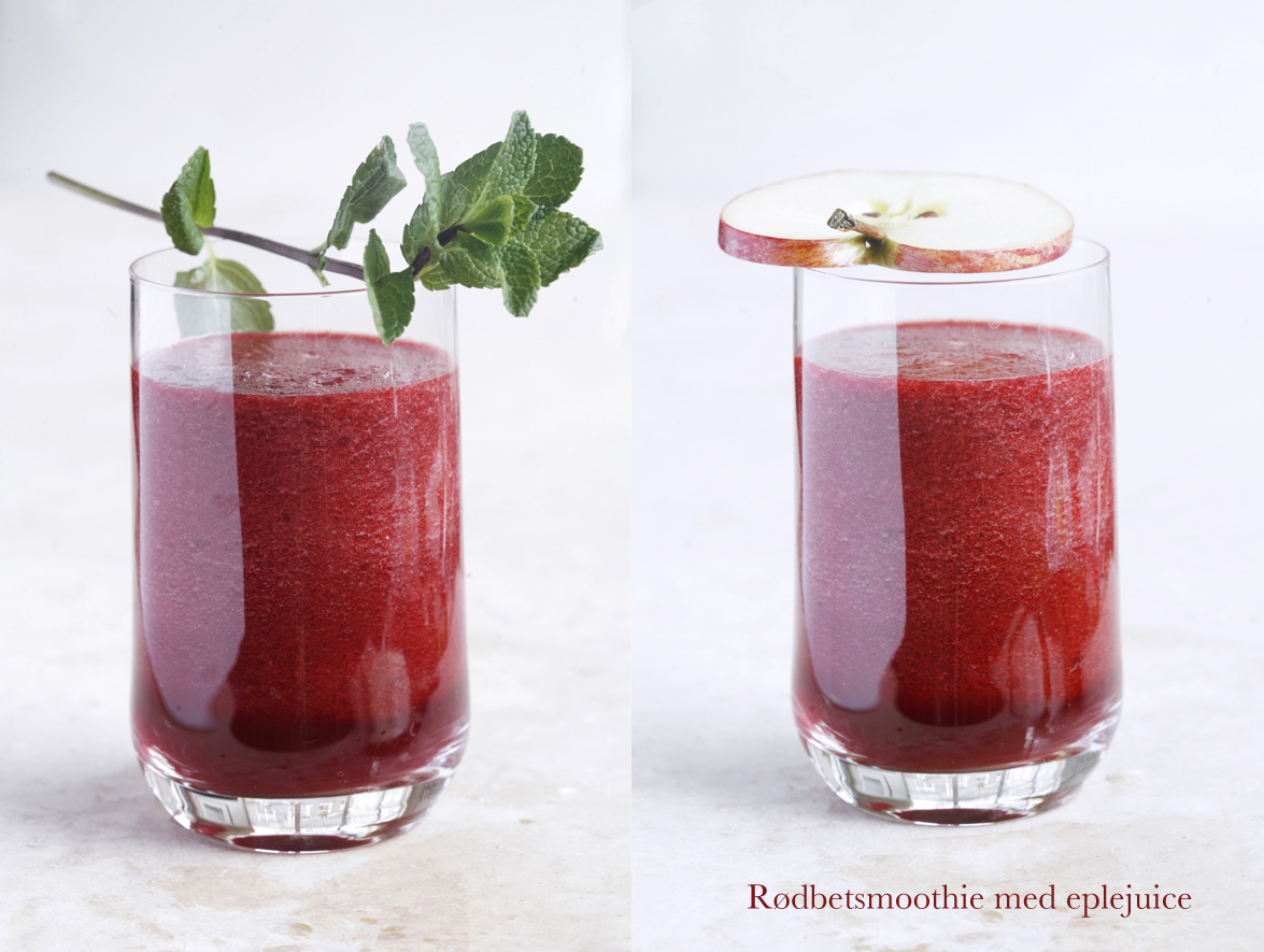 Ha rødbeter og eplejuice i en blender og bland i noen sekunder på full styrke. Hell over i glass og pynt med mynte eller eple. Du kan også ha litt mynte i blenderen om du ønsker en sterkere myntesmak.