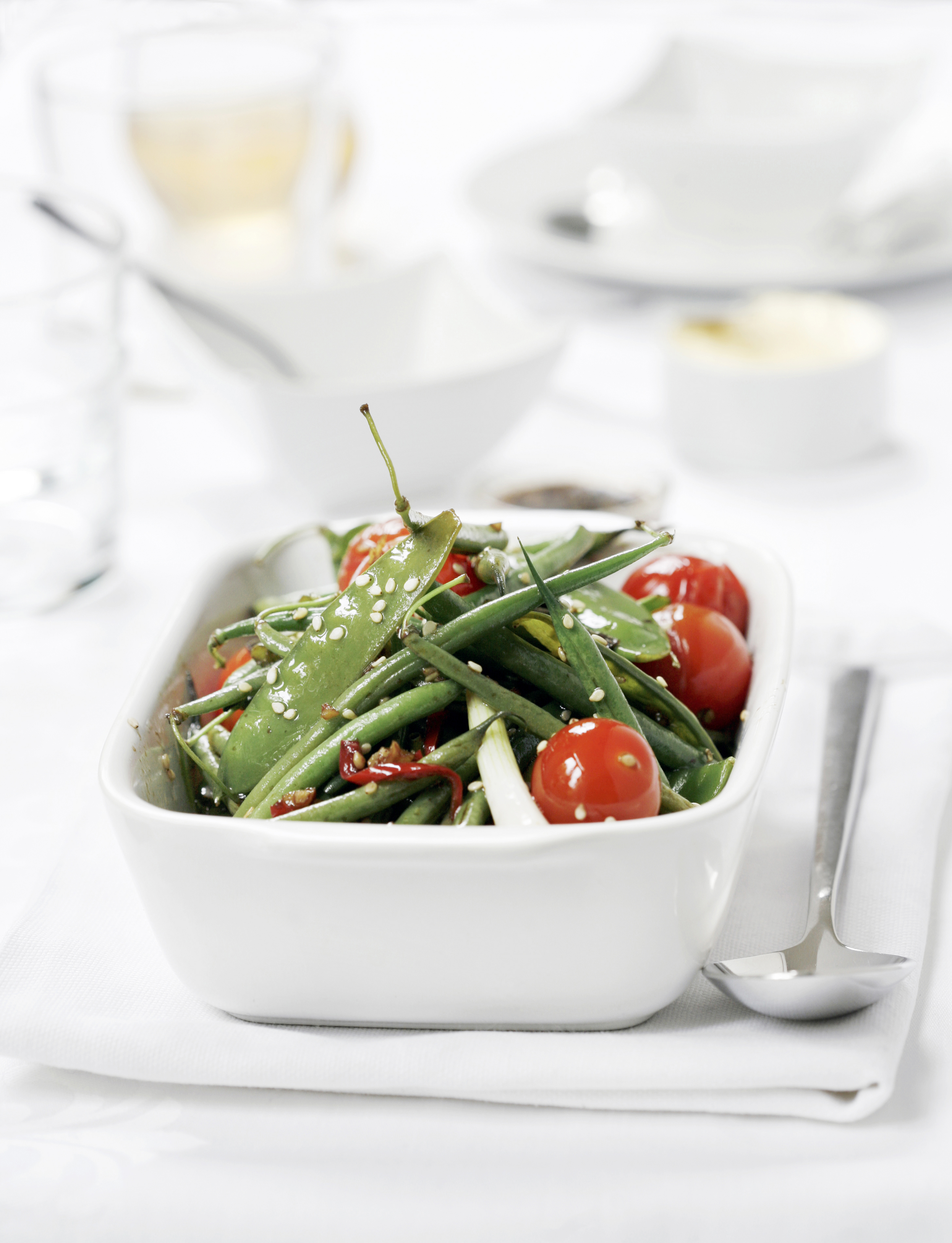 Grønne bønner med chili, cherrytomat og ingefær