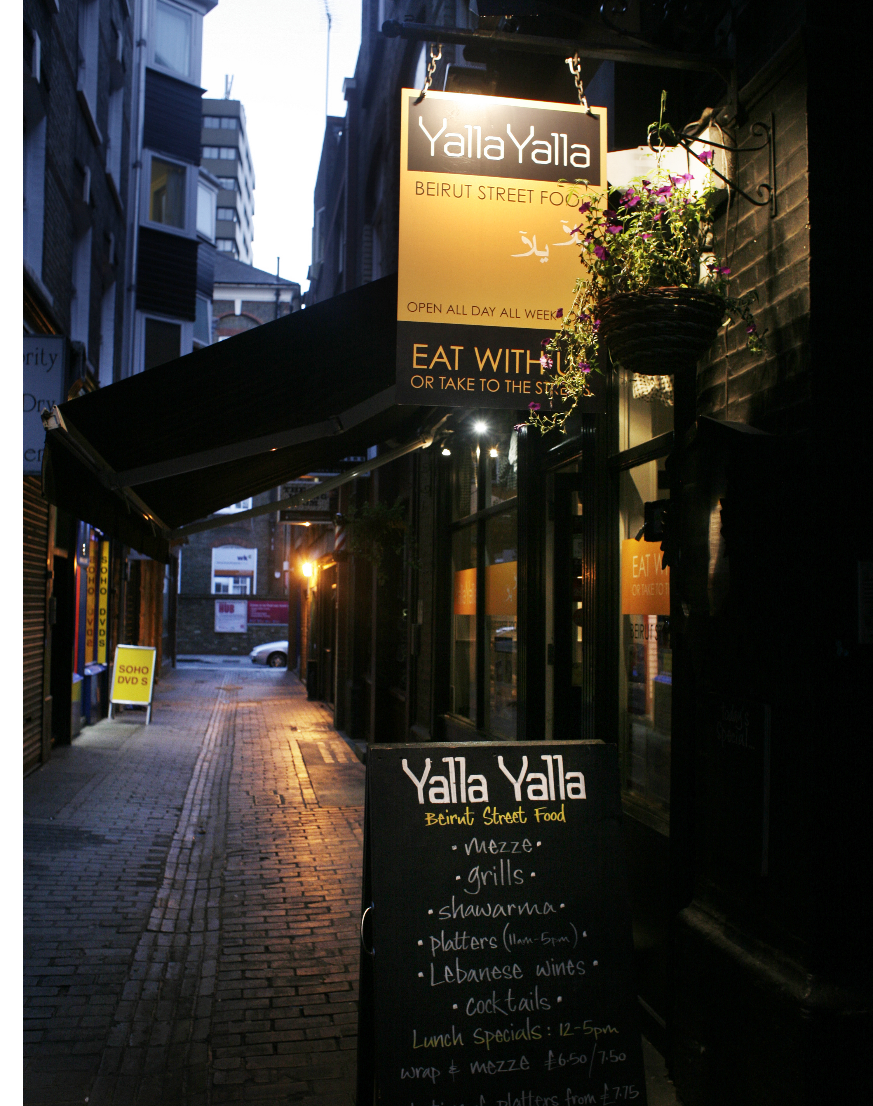 I et lite smug i Soho finner du Yalla Yalla (1 Green’s Court, Soho), en bitteliten libanesisk restaurant hvor du nyter maten inne eller tar den med deg ut på gaten, som ofte gjøres med denne type mat. Her får du libanesisk øl og libanesisk Savignon Blanc i tillegg til deilige forretter og hovedretter.