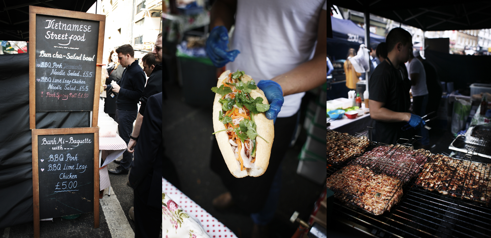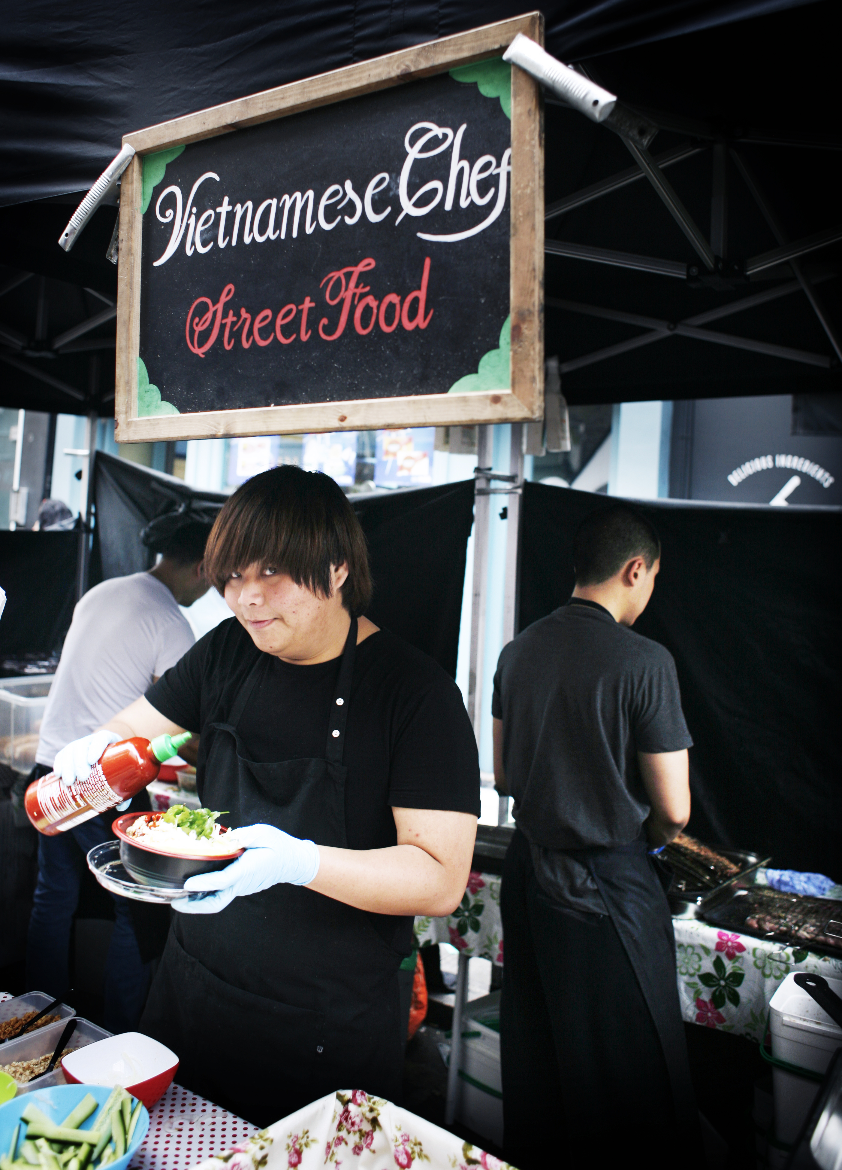 Da Londonkjøkken tok turen hit sist valgte vi Vietnamese Chef Streetfood. Her får du BBQ-kjøtt som kylling og svin servert enten i en boks med nudler eller i en stor baguette (Banh mi). Uansett hvilken av disse du velger så får du en herlig råkostsalat med saus og fersk koriander sammen med kjøttet. Størrelsen på baguetten er enorm og holder deg mett i flere timer..