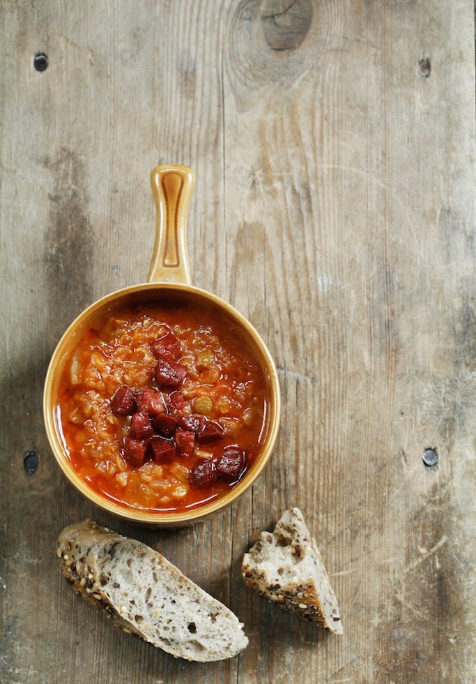 Linse- og chorizosuppe